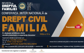 Conferința [Inter]națională de Drept Civil. Familia. Ediția a VI-a - „În căutarea echilibrului dintre nevoile prezentului și experiența trecutului” Revista de Dreptul Familiei, în parteneriat cu Facultatea de Drept a Universității din București [...]