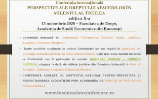 Conferința ”PERSPECTIVE ALE DREPTULUI AFACERILOR ÎN MILENIUL AL TREILEA” (www.businesslawconference.ro) organizata in data de 13 noiembrie 2020 de Facultatea de Drept a Academiei de Studii Economice din Bucuresti impreuna cu Societatea de Stiinte Juridice si Administrative. Aceasta conferinta este o [...]